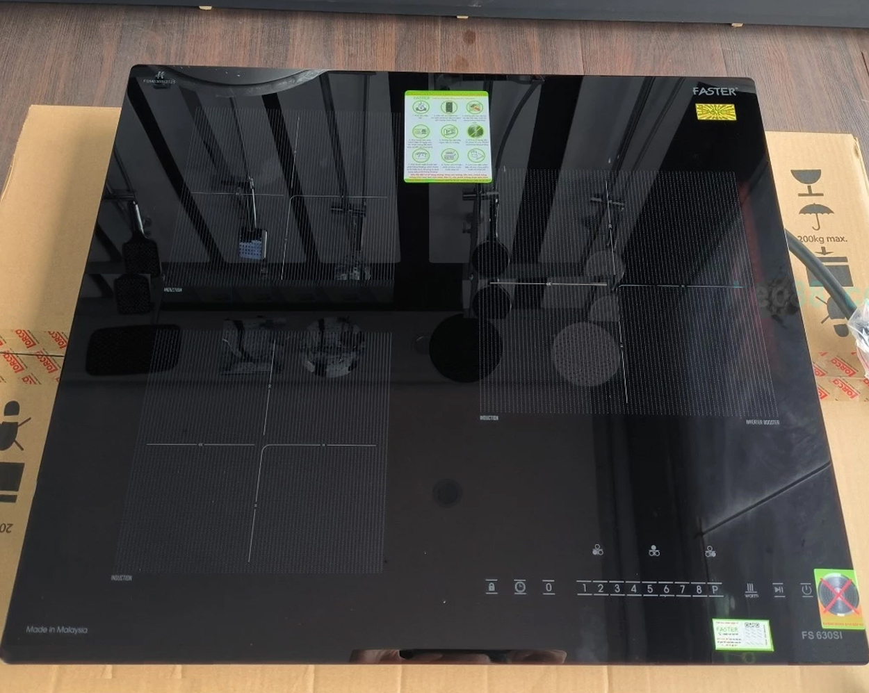 Bếp từ Faster FS 630SI sở hữu kiểu dáng âm kính hiện đại, mặt kính đen nguyên khối sang trọng, dễ lau chùi, chịu lực và chịu nhiệt tốt. Với kích thước mặt kính 590 x 520mm và kích thước khoét đá 568 x 495mm, sản phẩm dễ dàng lắp đặt trong nhiều loại mặt bếp khác nhau mà không cần thay đổi kết cấu bếp hiện tại.