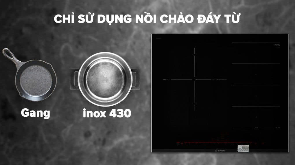 Bếp từ Bosch PXJ675DC1E ứng dụng công nghệ cảm ứng hiện đại, giúp đun nấu nhanh chóng và tiết kiệm năng lượng. Cơ chế hoạt động dựa trên nguyên lý dòng điện từ trường, chỉ làm nóng đáy nồi mà không làm nóng bề mặt bếp, đảm bảo an toàn tuyệt đối cho người sử dụng.