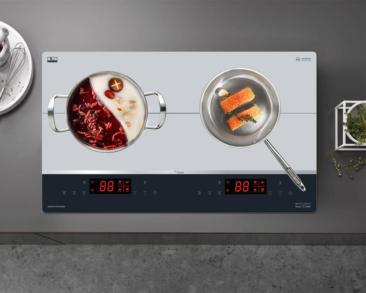 Bếp từ Canzy CZ-TL0887 là dòng bếp từ đôi cao cấp được sản xuất tại Thái Lan, nổi bật với thiết kế sang trọng và tích hợp những công nghệ tiên tiến nhất. Mặt kính ELCD Platinum Ceramic siêu bền, công nghệ Inverter tiết kiệm điện và công suất mạnh mẽ 4800W, bếp từ Canzy CZ-TL0887 mang đến trải nghiệm nấu ăn nhanh chóng, an toàn và tiết kiệm, phù hợp cho mọi gia đình hiện đại.