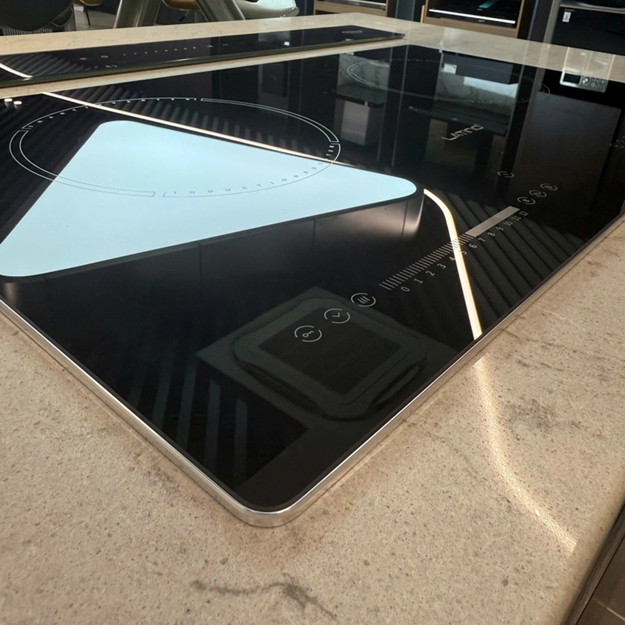 Máy được trang bị bảng điều khiển cảm ứng trượt Slide riêng biệt cho từng vùng nấu, giúp người dùng điều chỉnh công suất dễ dàng chỉ với thao tác vuốt nhẹ. Màn hình LED hiển thị rõ ràng, trực quan, phù hợp với mọi đối tượng sử dụng, kể cả người lớn tuổi.