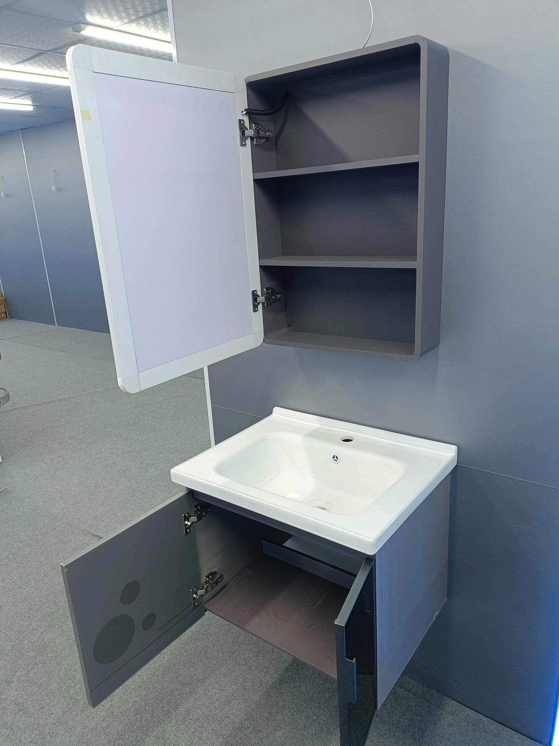 • Thiết kế tủ đa ngăn thông minh, giúp bạn lưu trữ mỹ phẩm, khăn tắm, đồ dùng cá nhân một cách ngăn nắp, gọn gàng.