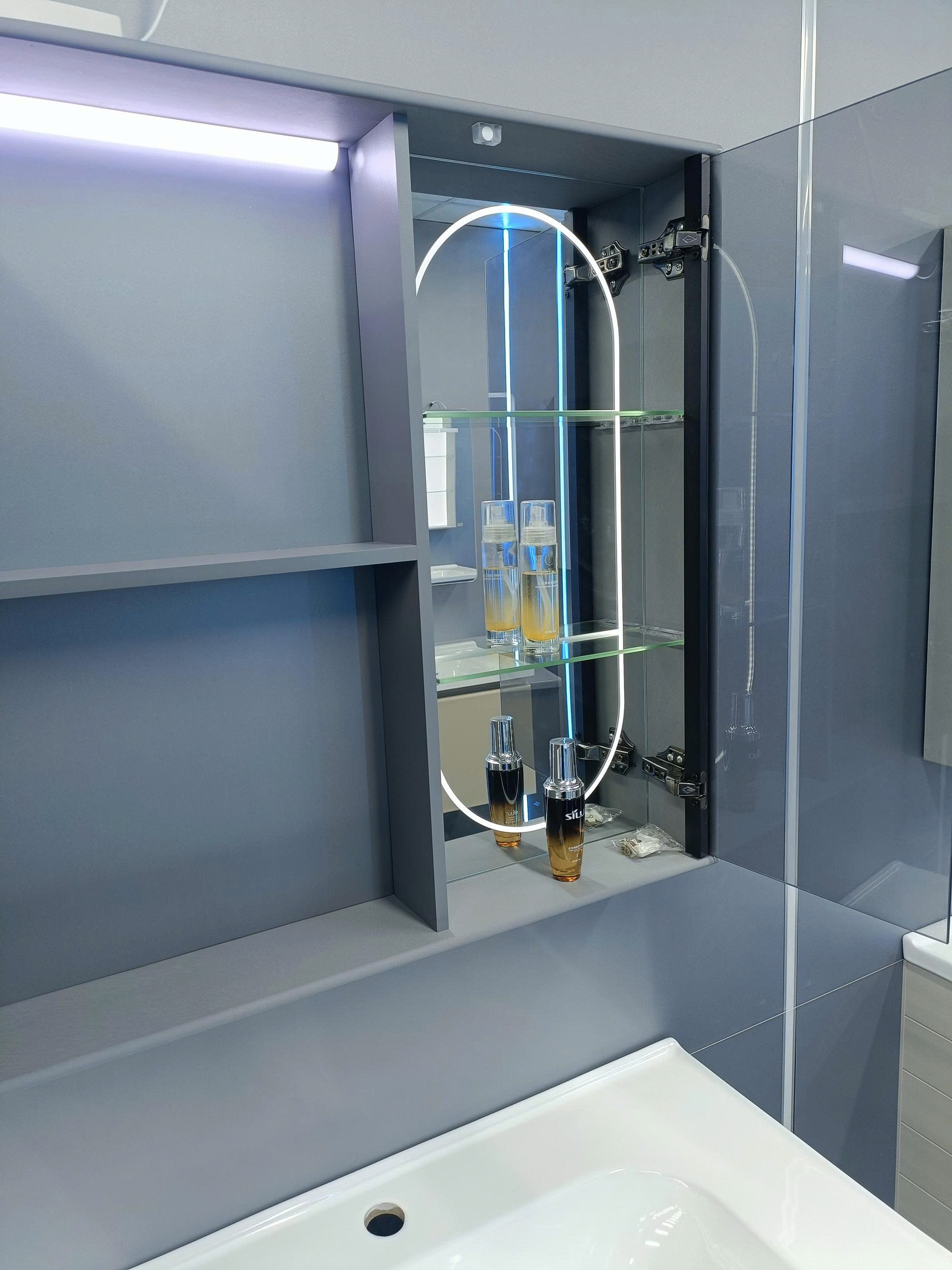 Thiết kế tủ đa ngăn thông minh, giúp bạn lưu trữ mỹ phẩm, khăn tắm, đồ dùng cá nhân một cách ngăn nắp, gọn gàng.