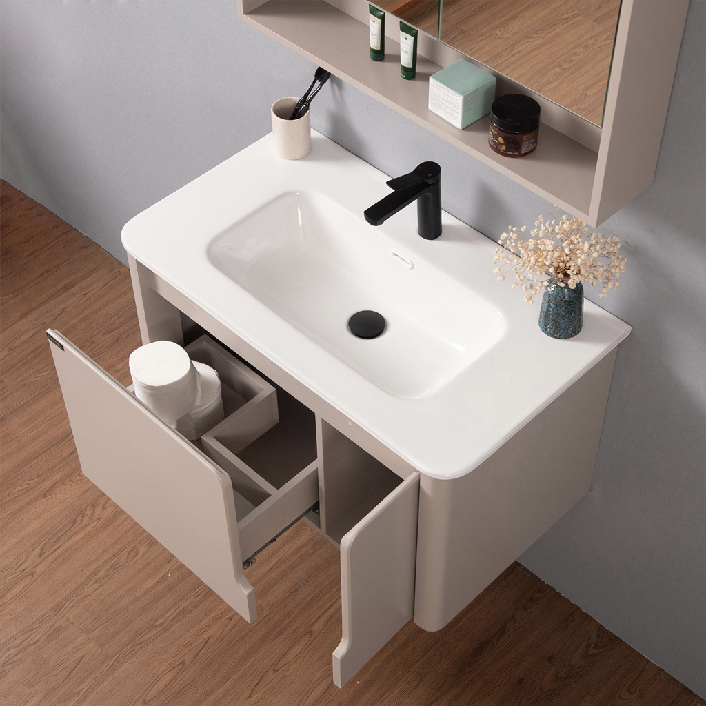 Tủ lavabo được tích hợp không gian lưu trữ rộng rãi, cho phép bạn sắp xếp các vật dụng nhà tắm một cách khoa học và gọn gàng. Kết hợp với gương tủ giúp tăng sự tiện nghi, tiết kiệm diện tích, đồng thời giữ cho không gian luôn sạch sẽ và ngăn nắp.