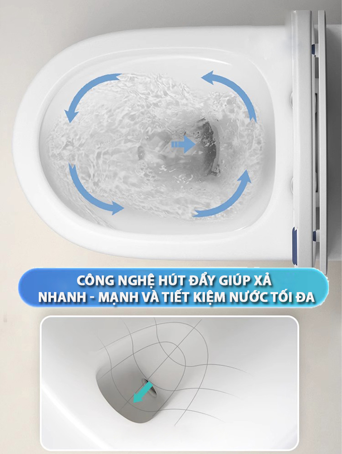 🔹 Hệ thống xả xoáy hút đẩy – Sạch nhanh, không gây tiếng ồn