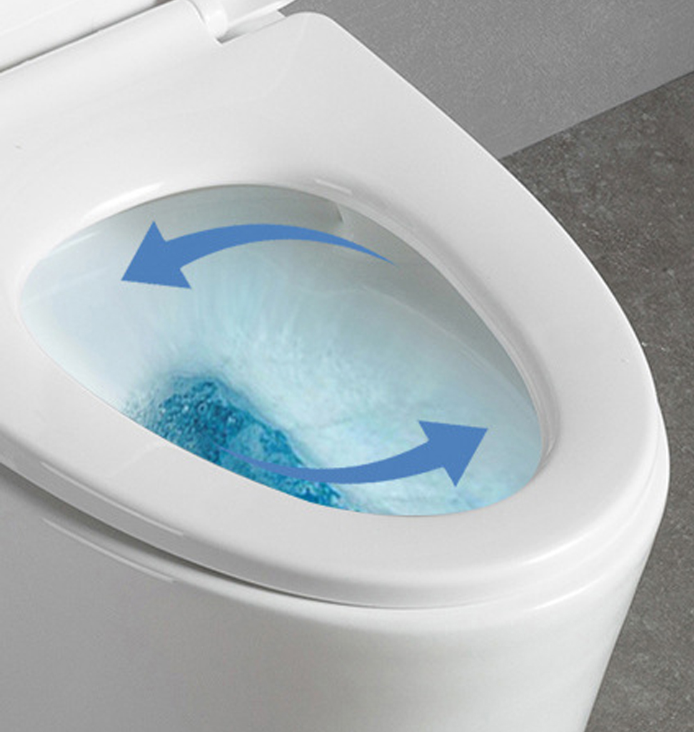Kết hợp công nghệ xả xoáy và hút đẩy mạnh mẽ, cuốn trôi mọi vết bẩn chỉ trong một lần xả.