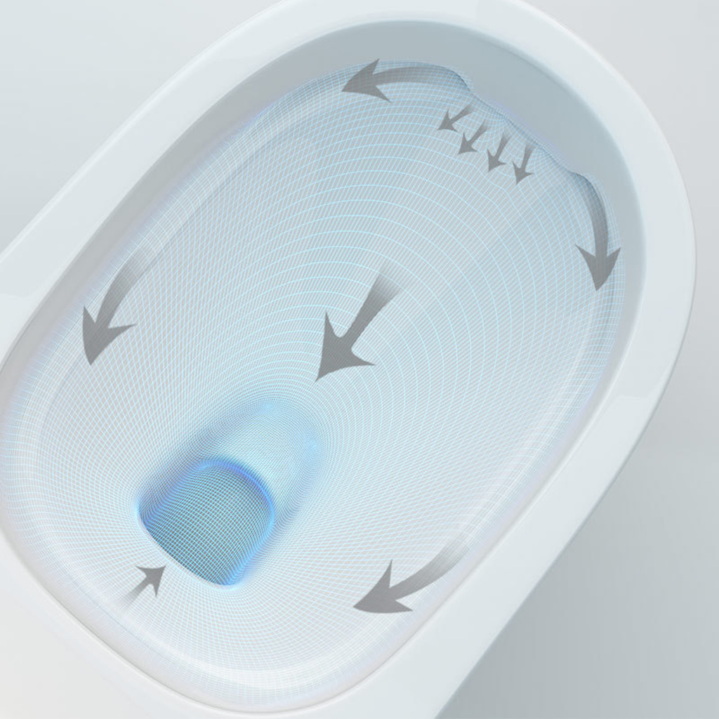 Kết hợp công nghệ xả xoáy và hút đẩy mạnh mẽ, cuốn trôi mọi vết bẩn chỉ trong một lần xả.