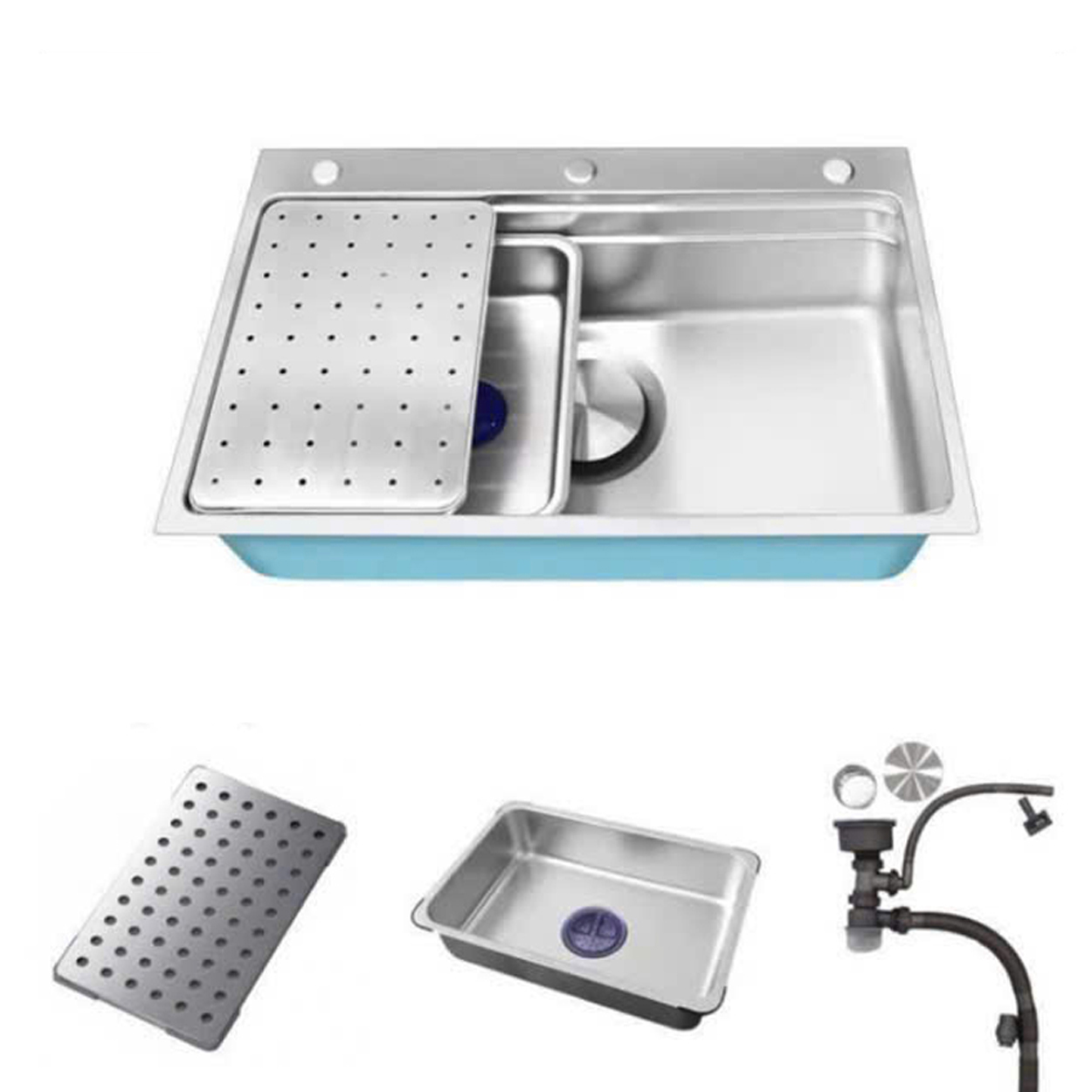 - Chất Liệu INOX 304 Siêu Bền: Sản phẩm được chế tạo từ inox 304 cao cấp, đảm bảo độ bền vượt trội, khả năng chống hoen gỉ tuyệt đối, giữ cho chậu rửa luôn sáng bóng như mới trong suốt thời gian dài sử dụng. Đây là yếu tố then chốt giúp sản phẩm có tuổi thọ cao, chịu được các tác động mạnh mà không bị biến dạng.