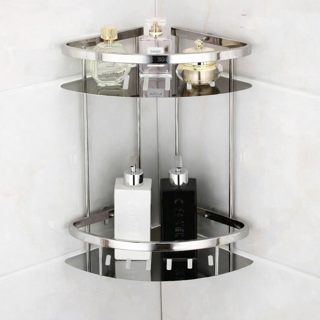 Kệ góc 2 tầng inox: giúp tiết kiệm diện tích, giữ đồ nhà tắm gọn gàng.