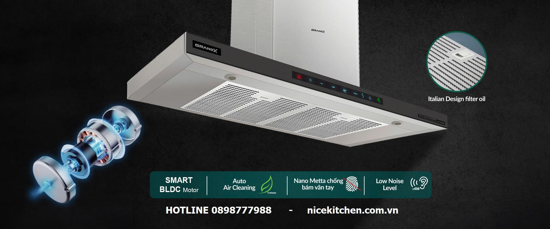 Một trong những điểm mạnh của GrandX GX H90C68B chính là độ ồn chỉ khoảng ±42dB, giúp bạn thoải mái nấu ăn mà không bị làm phiền bởi tiếng động lớn.