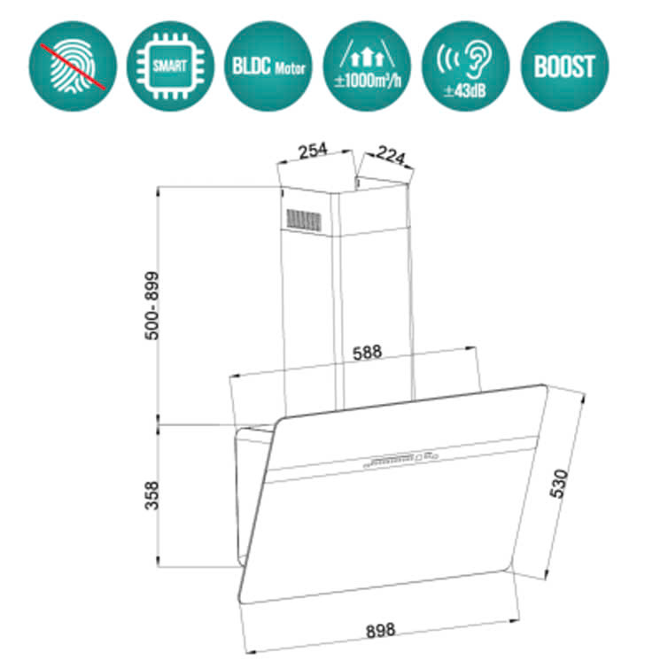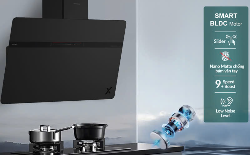 Hiệu suất hút mạnh mẽ, giúp loại bỏ khói và mùi nhanh chóng.