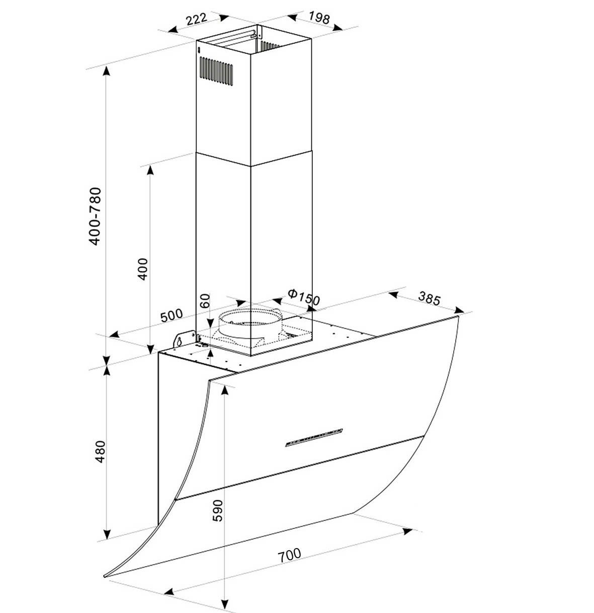 Máy hút mùi kính vát cong dạng TV |