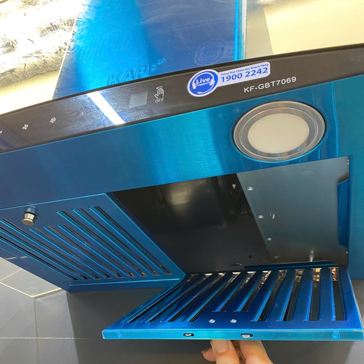 KAFF KF GBT7069 mang đến trải nghiệm hiện đại nhờ bảng điều khiển cảm ứng kết hợp cảm biến vẫy tay thông minh. Người dùng chỉ cần vẫy tay qua vùng cảm biến để bật/tắt máy, chuyển tốc độ hút mà không cần chạm tay trực tiếp – cực kỳ tiện lợi trong môi trường bếp hay dính dầu mỡ, tay ướt.