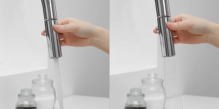 - Chế độ dòng chảy: Nhẹ nhàng phù hợp với việc rửa rau, trái cây hay vật dụng nhỏ như chén đĩa. Chế độ dòng chảy tạo ra một dòng nước êm dịu, không gây bắn nước mạnh.